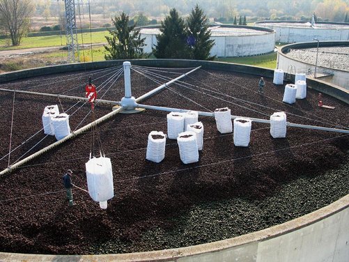 Eine Sandfilteranlage wurde erstellt, um die feinen Schmutzpartikel im Kläranlagenablauf noch zurückzuhalten.